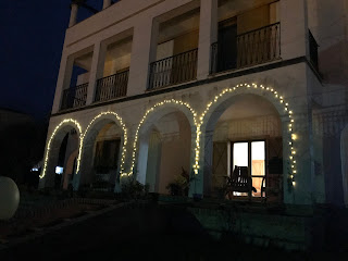 Saturday night I had dinner with Antonio and Anna at a great agriturismo up in the mountains- everything is "up in the mountains" - Great food and company - and this place also had live music and dancing. But before making our trek up the mountain they took me to see a presepe in Ascea. Now remember presepe's are very important in southern Italy. They consist of the nativity AND a complete village surrounding the manger. Presepes can range in size from small table top presepes to complete rooms. I would venture to say the presepe is more important here than the Christmas tree. I have two nativities that you saw in the prior post - but I will now start to make a presepe as well using my family nativity as the base. I will need to add to it. I took some photos and video of the presepe we saw in Ascea. Take a look and you will see how detailed these can get. They are the equivalent of some of the Christmas villages that are done in the U.S. This presepe had moving parts, live plants and lots of lights and took 2 months to create. The pictures do not due it justice but I hope you get the idea of what a presepe truly is.